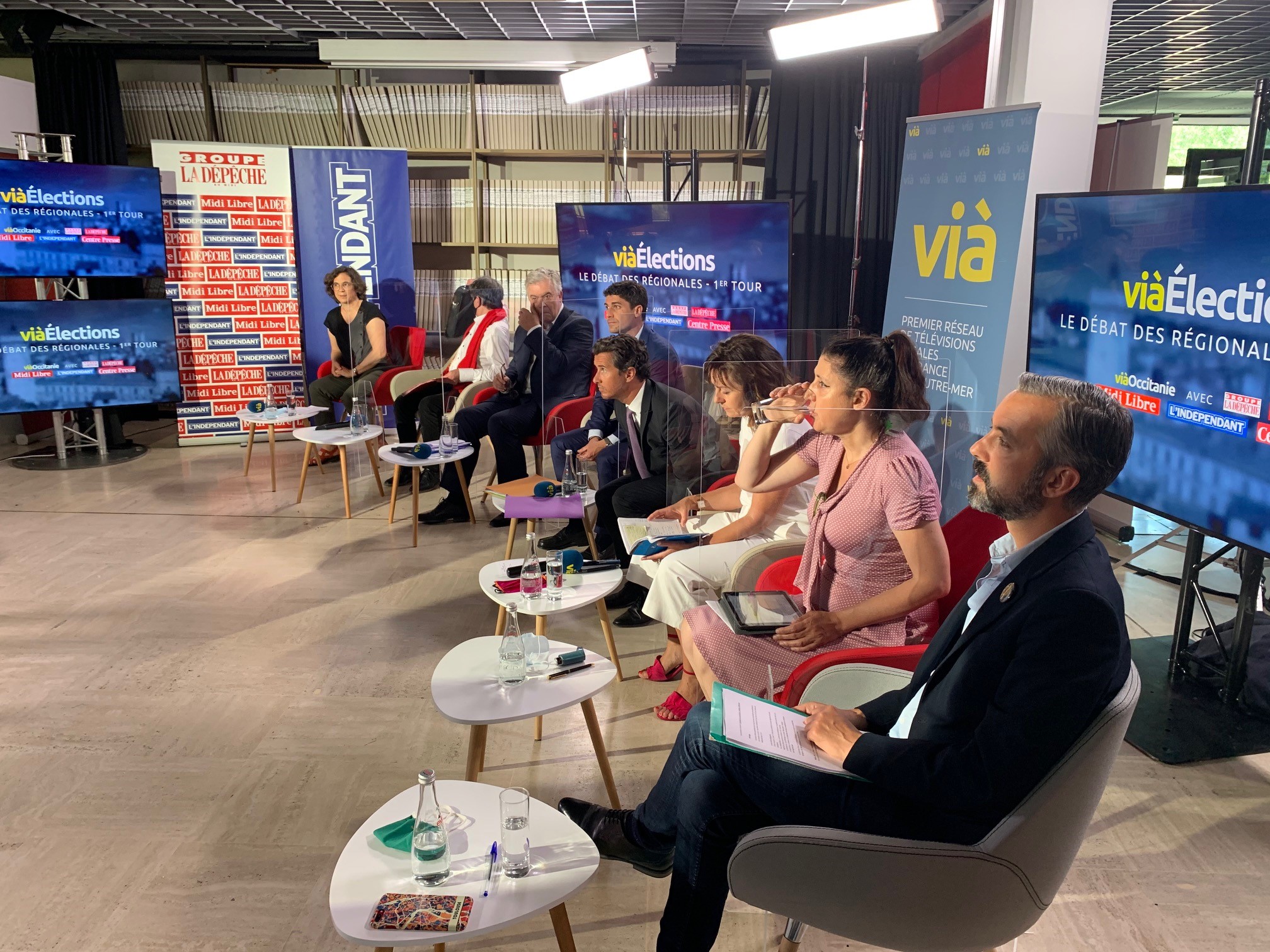 Le grand débat des élections régionales en Occitanie se tenait ce lundi 14 juin 2021 à 19h sur l'antenne de 100%. Les candidats en lice pour le 1er tour de scrutin le 20 juin s’affrontaient dans les locaux du quotidien Midi Libre à Saint-Jean-de-Védas, sur le plateau monté par la télévision régionale viàOccitanie. Une grande soirée politique de 2 heures organisée avec nos partenaires du groupe La Dépêche du Midi, les journaux l’Indépendant, Midi Libre et Centre Presse.