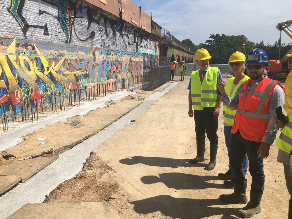 La première phase des travaux est censée durer jusqu'en mars 2018, elle a débuté en juin dernier. Et pendant l'été les ouvriers s'attellent notamment à l'un des premier temps forts du chantier : la protection du viaduc ferroviaire, puisque la passerelle sera solidaire du viaduc. On en parle avec Alexandre Lounas, ingénieur travaux du chantier: