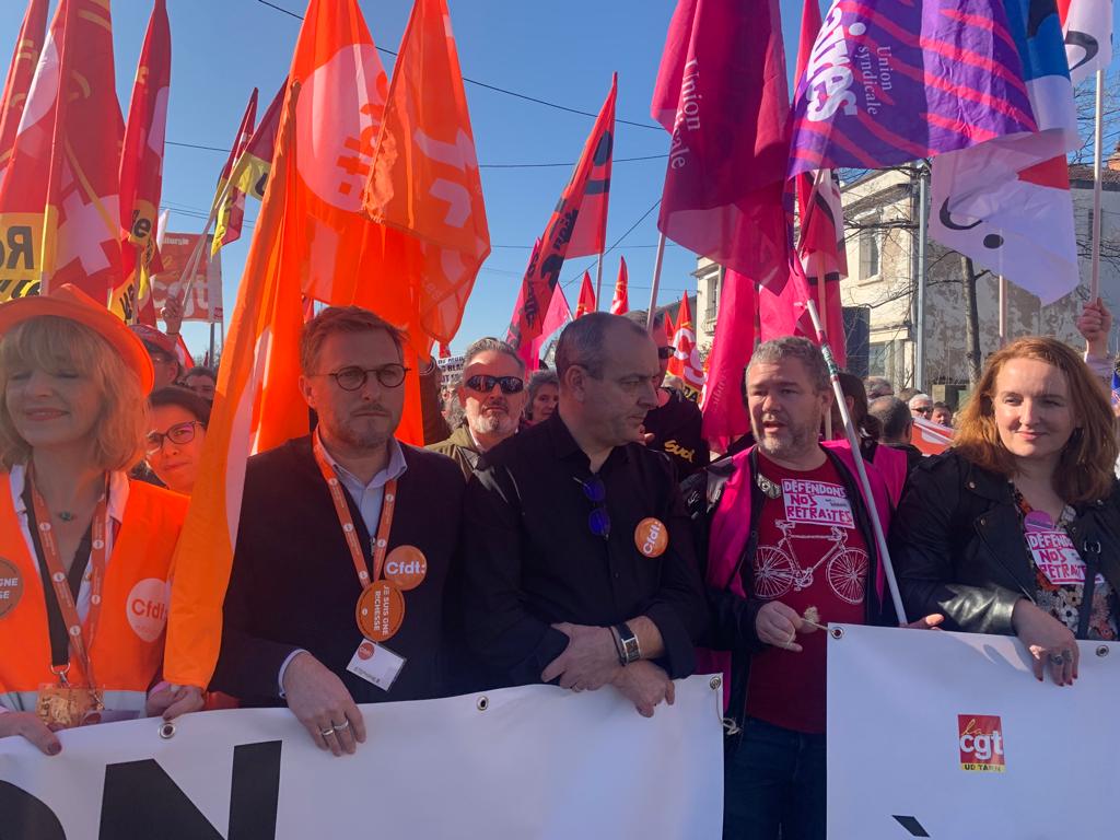 Ils étaient plus de 50 000 manifestants selon les syndicats, 10 000 selon la préfecture pour cette cinquième journée de manifestation contre la réforme des retraites à Albi. Un cortège marqué par la présence des leaders des organisations de l'intersyndicale dans la ville rouge.
