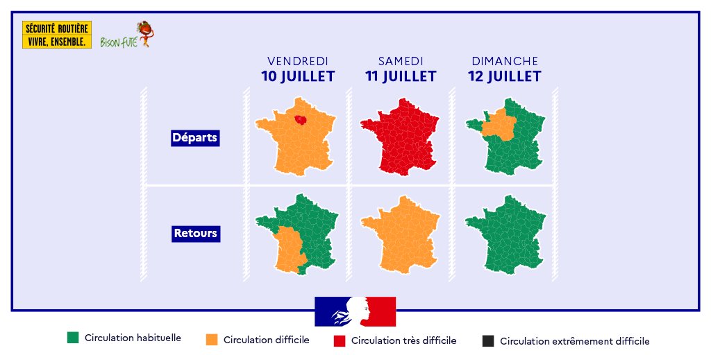 Si vous revenez, ça pourrait coincer également puisque c'est orange dans le sens des retours. Prudence puisque les contrôles des forces de l'ordre seront renforcés. N'hésitez pas à faire 1/4 d'heure de pause toutes les 2 heures. Vérifiez que vous et vos enfants soient bien attachés.
