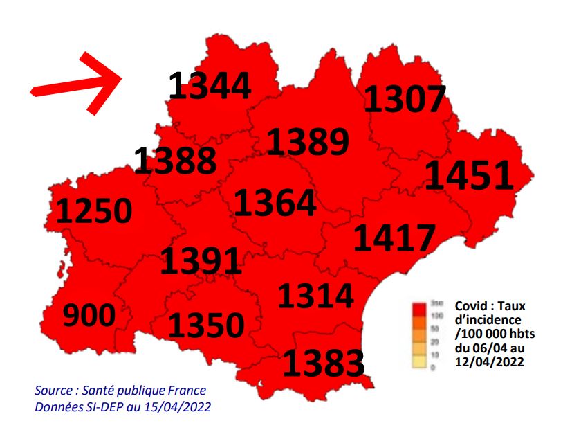 L’incidence la plus faible est pour les Hautes-Pyrénées, avec 900 cas pour 100 000 habitants.
