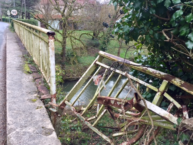 Sur le pont, depuis plusieurs mois, une partie de la rembarde a été arrachée.