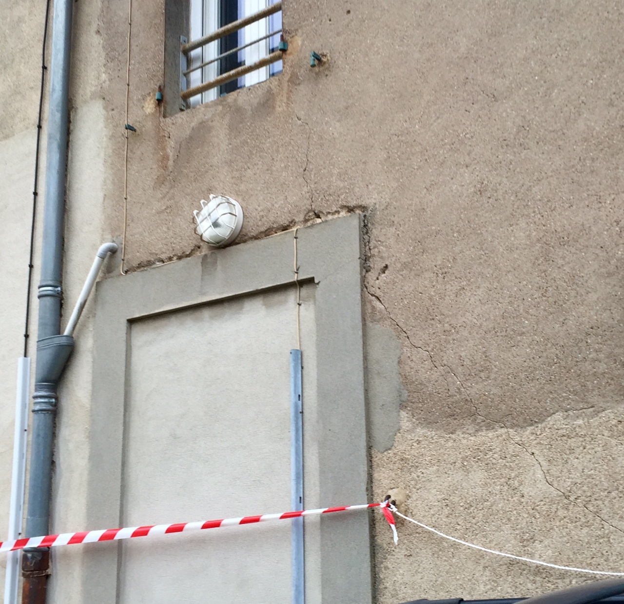 Sur la photo: L’effondrement d’une partie de la toiture a provoqué cette longue fissure sur la façade de la maison de Zora, la voisine.