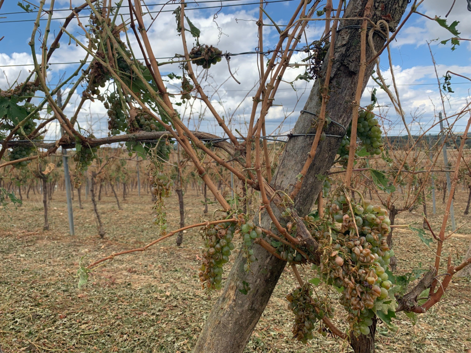 « C’est la catastrophe » pour Philippe Larrey, viticulteur à Montréal du Gers. Derrière lui, les ceps sont à nu et un arbre est ouvert en deux. « Le pire est arrivé » se lamente-t-il alors que les vendanges devaient commencer dans quelques jours. Là où l’orage est passé, la totalité de sa récolte est perdue « les grappes vont tourner au vinaigre dès demain et vu comment le bois est meurtri : ça impactera aussi la récolte de la saison prochaine ». Accompagné de la sous-préfète Laurence Lecoustre, de la maire adjointe de Condom et du député David Taupiac, il contemple atterré sa quinzaine d’hectares mâchée par la grêle : 100 000 euros engloutis par les intempéries ; « ça s’accumule, personnellement j’ai toujours le moral mais là je suis presque à bout car j'avais engagé tous les frais ».