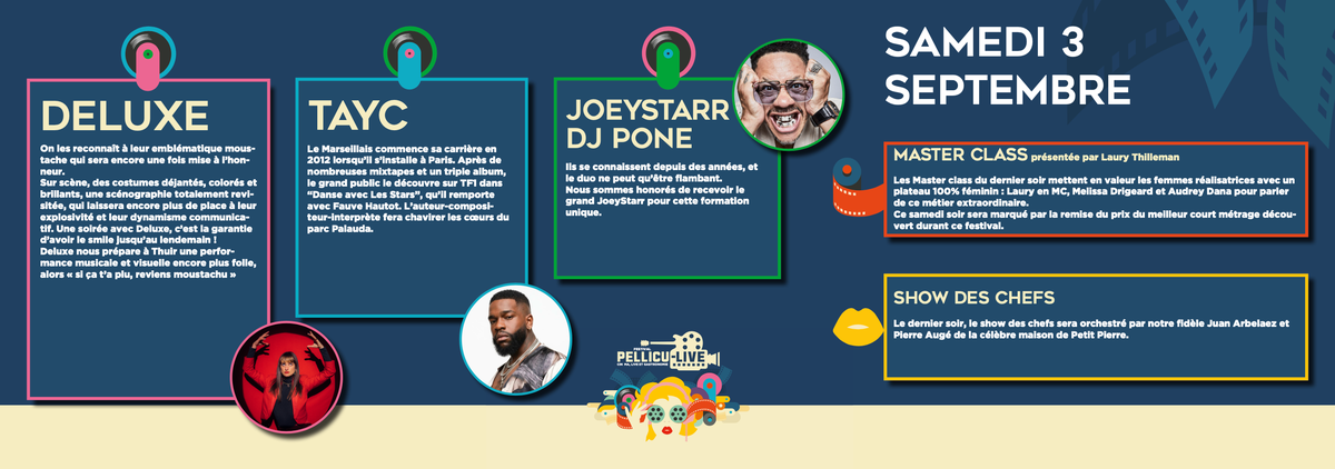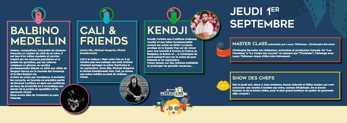 Pellicu-Live est un festival hybride qui même musique, gastronomie, et cinéma. Son concept s'articule autour de plusieurs soirées de concerts, précédées par des shows culinaires de grands chefs, et des masterclass animées par des acteurs et réalisateurs. Pour son édition 2022, c'est un tout nouveau menu qui est proposé au Parc Palauda du 1er au 3 septembre 2022.