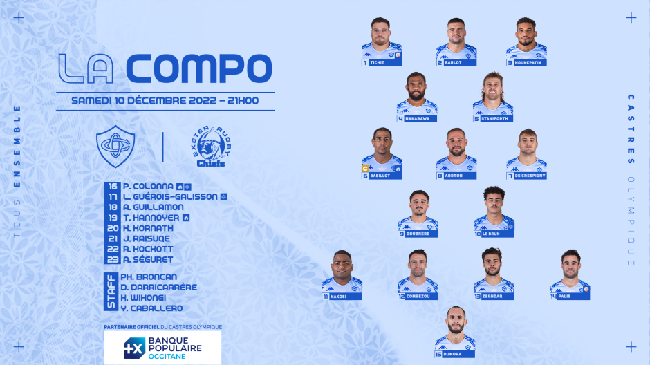 Mais je vous rappelle que Rory Kockott, qui a pris sa retraite à la fin de la saison dernière, a décidé de rempiler pour ce match pour aider les copains et le club. Raison de plus donc pour aller supporter le CO ce soir. Match à suivre également sur 100% Castres à partir de 20h30.