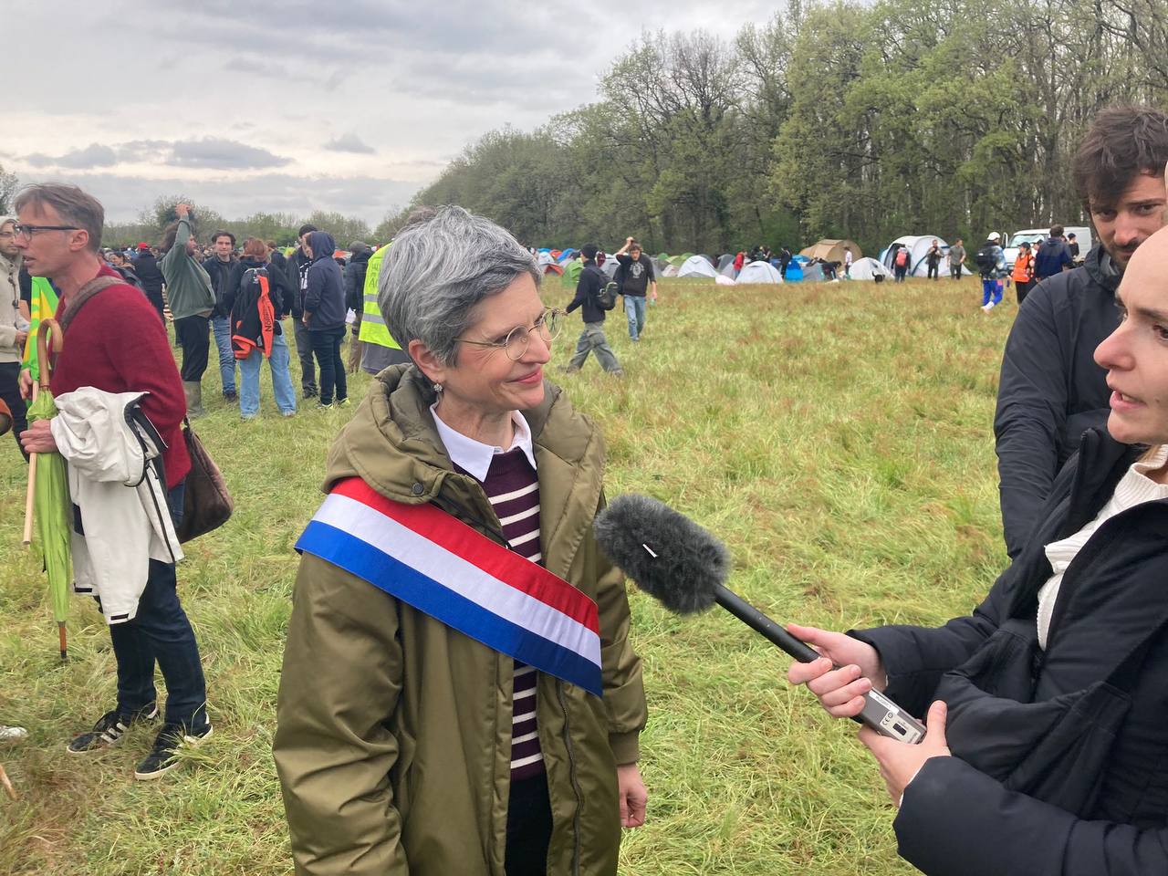 Sandrine Rousseau interrogée par des confrères de la télévision. Photo via chaine Telegram Action Toulouse.