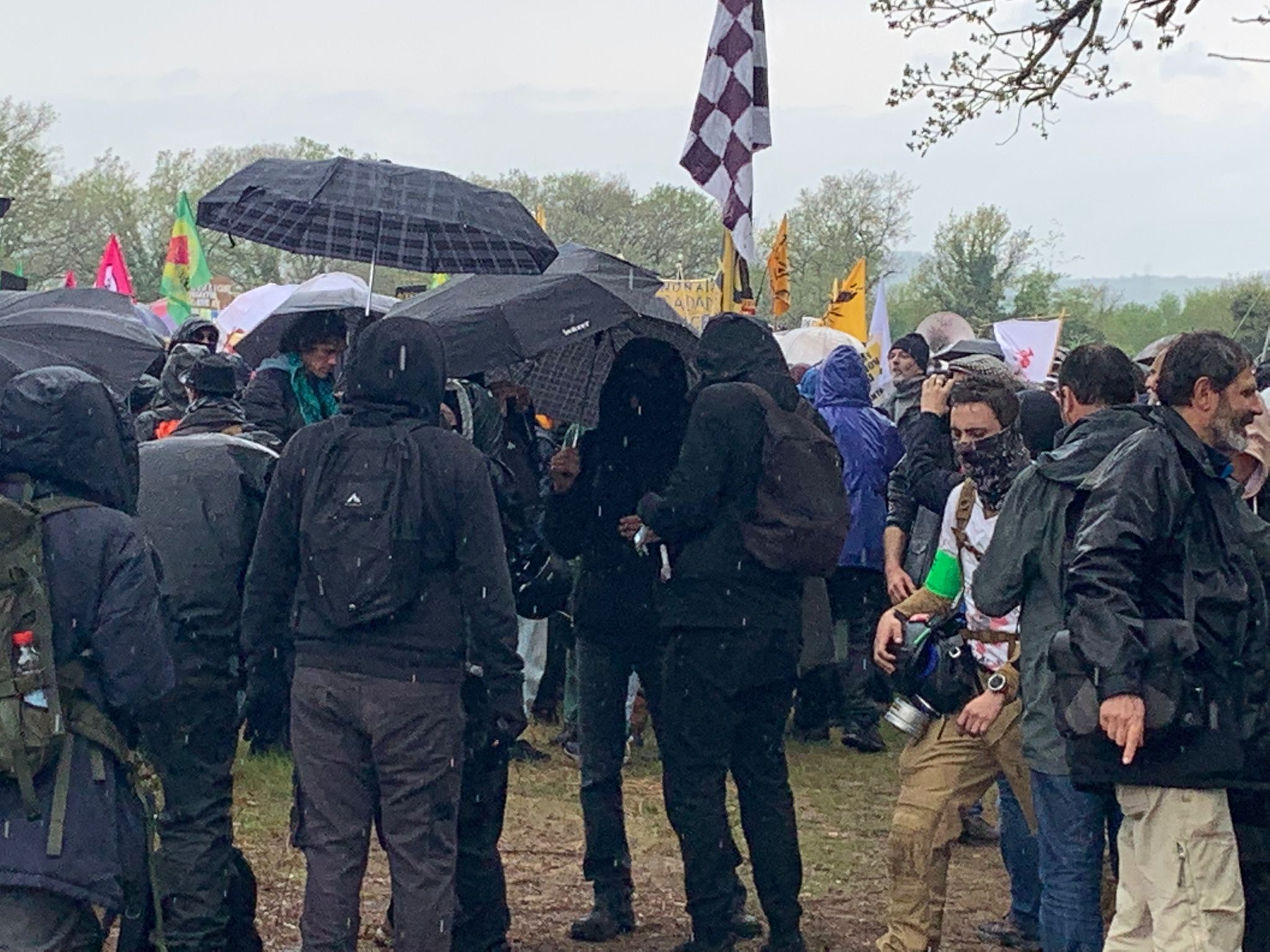 Au programme alors que les précipitations cessaient, 12 kilomètres de marche contre un projet "archaïque" selon les militants écologistes. La manifestation était sous haute surveillance, 800 policiers et gendarmes ont été mobilisés par les services de l'Etat ce week-end. Des membres apparentés au Black Bloc étaient visibles d'entrée de jeu dans le cortège au côté des manifestants pacifistes, parmi lesquels des personnalités politiques LFI et EELV : Manuel Bompard, Sandrine Rousseau, ainsi que les députés du Tarn et de Haute-Garonne Karen Erodi, Anne Stambach-Terrenoir, François Piquemal.