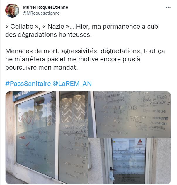 Selon elle, ces dégradations sont notamment liées au pass sanitaire. Elle a décidé de porter plainte.