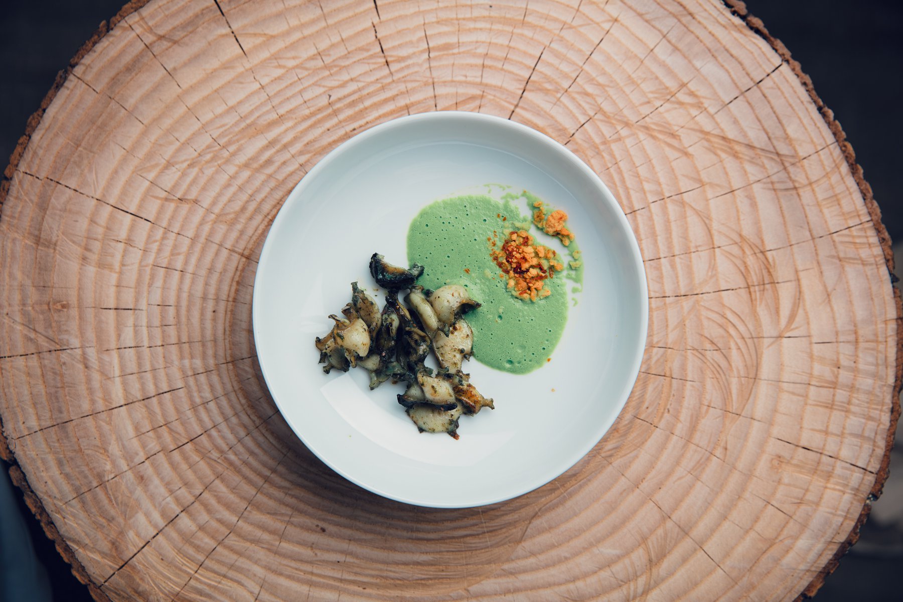 Les produits locaux sont mis à l'honneur, le tout agrémenté de quelques épices exotiques à la Villa Pinewood ouverte depuis environ un mois "les approvisionnements sont ultra-locaux, aussi bien en légumes qu'en poissons et viandes, avec par exemple uniquement des poissons de la Montagne noire. Quelques produits d'Occitanie. Et on s'octoie 5% de produits étrangers pour les épices, sel et sucre" explique l'œnologue qui prépare les plats (avec son épouse) sur un plan de travail face aux convives. Des invités en très petit comité.