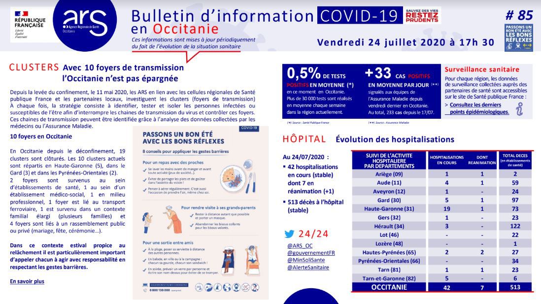 Voici le dernier bulletin publié par l'ARS Occitanie.