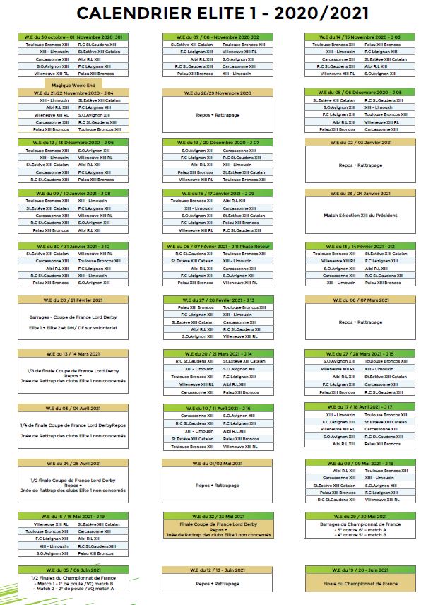 Avec une semaine de retard les calendriers d'Elite 1 et 2 en rugby à XIII sont sortis.