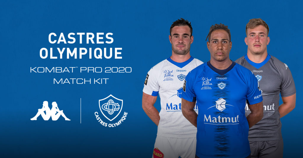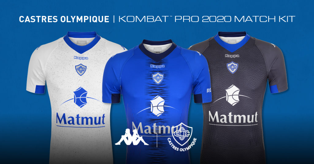 - le maillot "domicile " AGOUT fait référence à l’eau, partout présente dans notre territoire : l’Agout, le Sor, le Thoré, le Tarn et le Canal du Midi. Il reprend, bien sûr, les deux nuances de bleu du Castres Olympique.