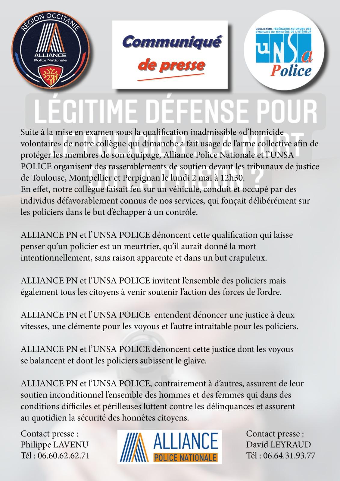 Le parquet poursuit le fonctionnaire pour des faits d’homicide volontaire. Involontaire selon les syndicats qui appelent à manifester. Les peines ne sont évidemment pas les mêmes. L’avocat du policier s’est d’ailleurs exprimé à ce sujet. Son client serait « broyé » et conteste également l'intitulé des poursuites. Les policiers se retrouveront devant les tribunaux de Montpellier, Toulouse ou encore Perpignan ce lundi à 12h30.