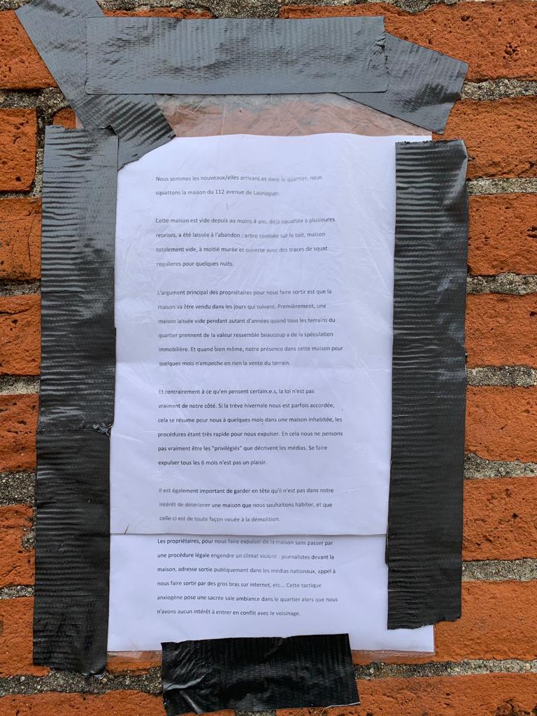 L’argument des squatteurs est simple, "ils estiment être protégés par la loi". Ils ont même apposé des (leurs?) noms sur la boîte aux lettres.