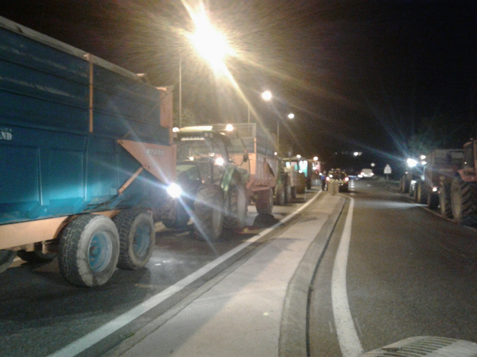 idem le 24 octobre au matin, avec le blocage de routes par les paysans des cantons de Caylus-St.Antonin et Caussade-Montpezat. Vendredi et samedi idem. Ce mercredi matin : les agriculteurs ont bloqué la D 999 à Montauban. Une initiative des paysans des cantons de Montauban-Lafrançaise et Nègrepelisse-Monclar.