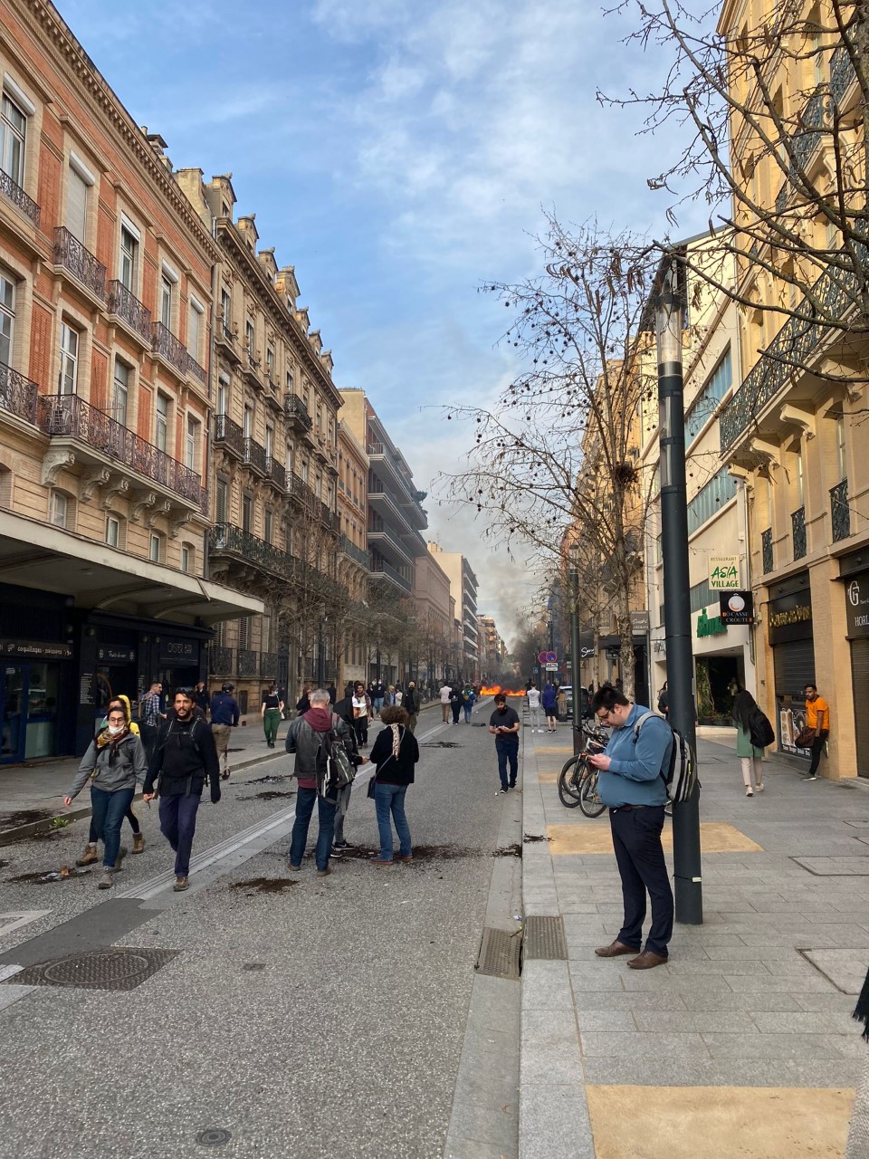 De petits groupes mobiles d'activistes radicaux brûlaient des poubelles dans les rues de Toulouse jusqu’en début de nuit : rue Raymond IV, mais aussi à Esquirol et autour de Jean-Jaurès... Jean-Luc Moudenc réagissait "au saccage" du centre ville, "je condamne sans réserve ces violences et les casseurs qui ont saccagé Toulouse cette après-midi. J'apporte tout mon soutien aux forces de l'ordre et aux pompiers qui ont accompli leur tâche face aux auteurs de ces violences".