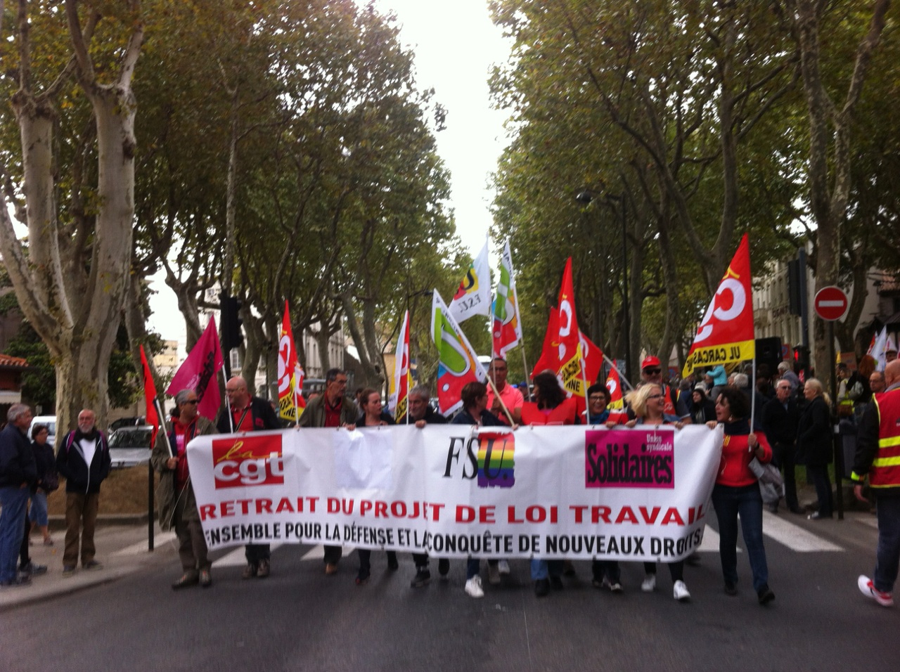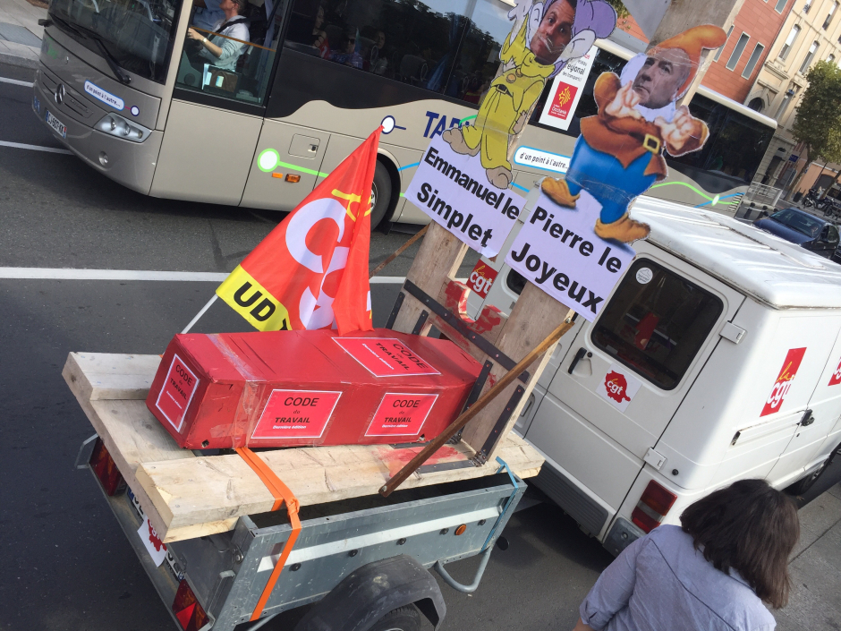 "Macron t'es foutu, les fainéants sont dans la rue": c'est notamment derrière ce slogan que plusieurs milliers de personnes ont manifesté ce mardi contre la réforme du Code du travail. A Toulouse, la manifestation de cet après-midi rassemble plusieurs milliers de personnes. A Albi, environ 2 500 manifestants défilaient cet après-midi, avec de nombreux fonctionnaires inquiets pour leur statut, à l'image de Brigitte Laroche, pour la CGT à l'hôpital d'Albi: