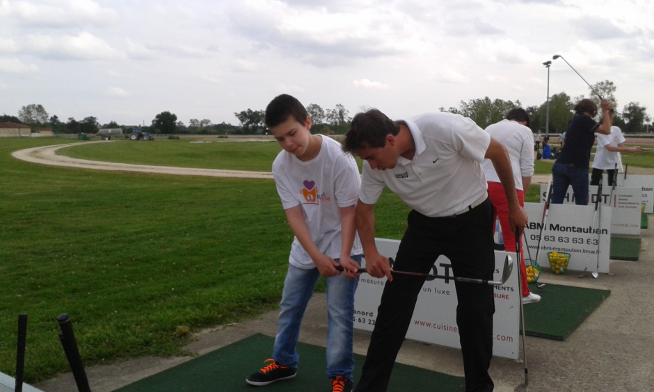 Journée au golf au profit des enfants malades. L'opération a été organisée par l'association 1 maillot pour la vie, en partenariat avec le Grand Montauban. Mercredi, plusieurs entreprises et des sportifs de la région, comme l'international français de handball Valentin Porte ou encore le footballeur du TFC, Nicolas Dieuze, ont pu profiter d'une après-midi au golf de l'Estang. L'inscription était payante. Tous les fonds ont permis d'organiser ce tournoi et surtout de permettre à cinq enfants de bénéficier d'une initiation au golf et de sortir de leur quotidien. Marina Paris était sur le green avec eux. Ecoutez son reportage.