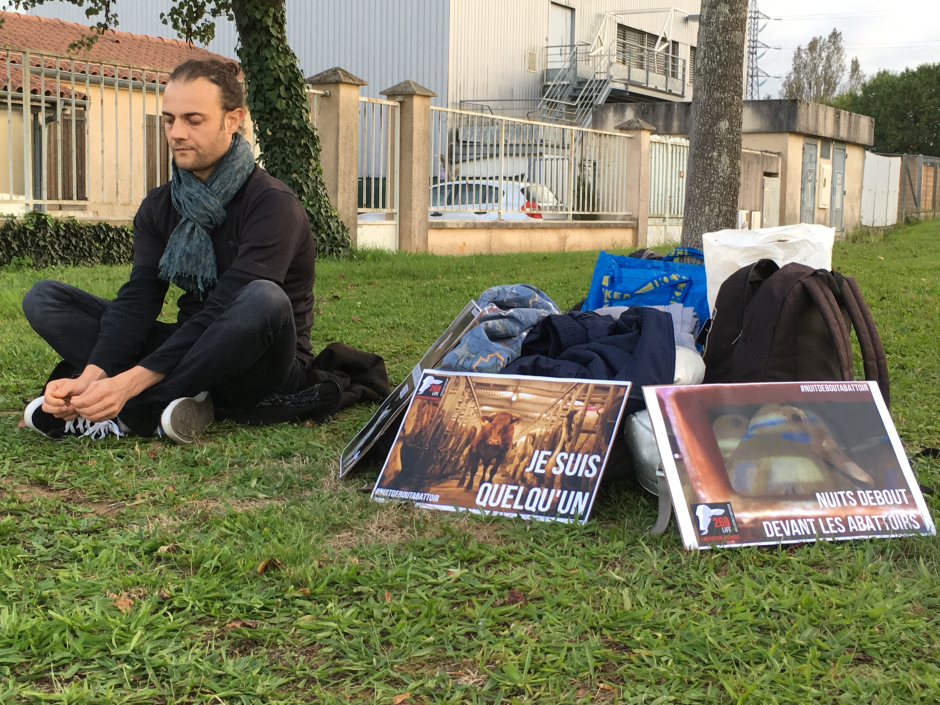 Une nuit debout devant l'abattoir de Tarbes. Elle était organisée hier soir par les militants antispécistes de l'association 269 Life Libération animale. Une action symbolique pour dénoncer la souffrance animale et la surconsommation de viande. Au final, ils étaient bien moins nombreux que les éleveurs qui, eux, au contraire s'étaient déplacés en nombre pour protester contre "l'intolérance des vegans" et défendre leur filière. Mais peu importe le nombre de militants sur place, les végans tenaient eux à faire passer un message. Julien Confesson.