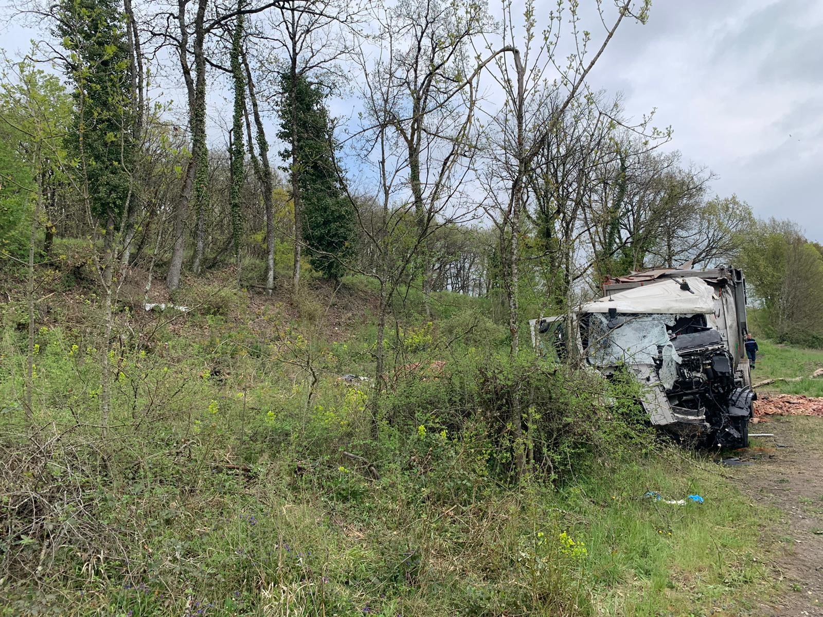 Le camion, qui transportait des carcasses d'animaux, circulait dans le sens Carmaux-Albi, lorsqu'il a percuté frontalement un fourgon-nacelle arrivant en face, sur la voie de dépassement. Il aurait fait au moins un tonneau et s'est retrouvé en contre bas de la route.