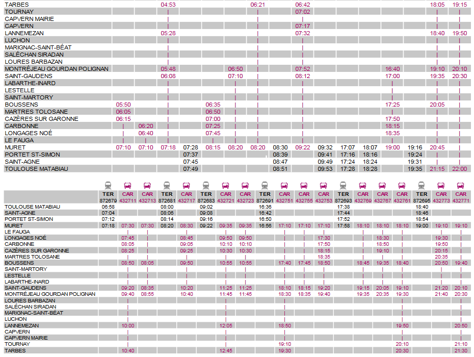 Aucun train au départ de Tarbes, trois bus de substitution mises en place par la SNCF avec terminus à Muret, pour prendre une correspondance vers Toulouse. Seul le bus de 8h40 filait à Toulouse-Matabiau (sans arrêt). Mais les usagers avaient apparemment pris leurs dispositions car la principale aire de co-voiturage de l'agglomération de Tarbes n'a pas été prise d'assaut. Comme en témoigne Gilles Gauthier sur place ce mardi matin.