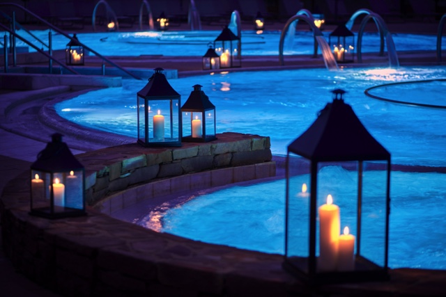 Dans un décor unique, les bassins intérieurs et extérieurs de plus de 500 m2, en eau chaude à environ 34°C toute l’année, sont équipés de jacuzzis, sièges à bulles, lits et bains bouillonnants, jets à forte pression, geysers, fontaines, cascades et cols de cygne… Saunas et hammams complètent cette offre élargie de détente sans nul autre pareil.
